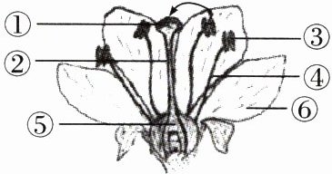思路分析:图中①是柱头,②是花柱,③是花药,④是花丝,⑤是子房,⑥是花瓣。图中的③和④共同构成雄蕊;桃花一般情况下是异花传粉;雌蕊和雄蕊是花的主要结构。