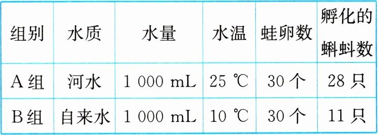 |组别|水质|水量|水温|蛙卵数|孵化的蝌蚪数|