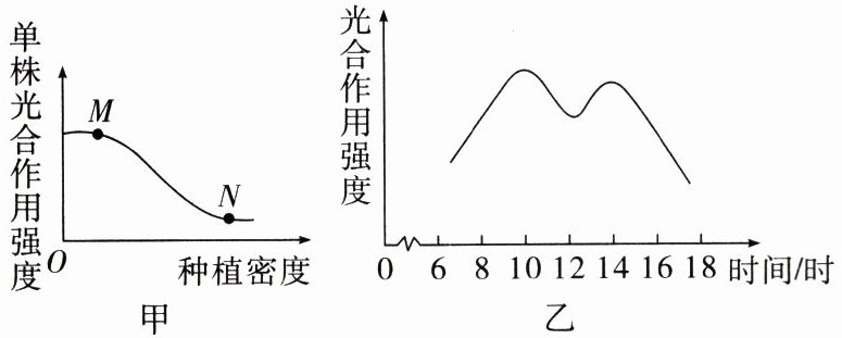 (2)某研究小组以大田种植的番茄为材料所做相关实验的结果如图甲所示,N 点与 M 点相比,限制单株番茄光合作用强度最主要的环境因素是_________。