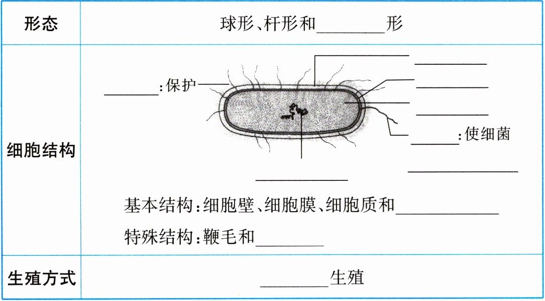相同点:细菌和真菌都具有细胞结构,都有细胞壁、细胞膜、细胞质。