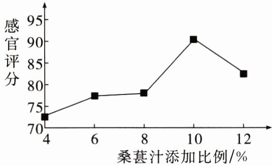 的趋势;当桑葚汁添加比例为10