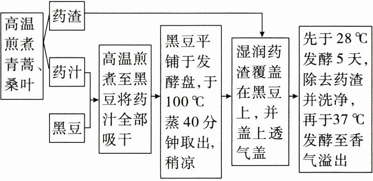 4. (2025六安期末) “小儿豉翘清热颗粒”是专门针对儿童风热感冒的一种药物,其成分有淡豆豉。淡豆豉以黑豆成熟的种子为主要原料,辅以青蒿、桑叶发酵而成,其制作过程如图所示,下列叙述正确的是 (