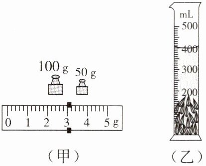 (2)往量筒中加入适量的水,测得其体积$V_1$为300mL,将上述种子放入量筒中,种子全部沉入水中,如图(乙)所示,此时水和种子的总体积$V_2= $