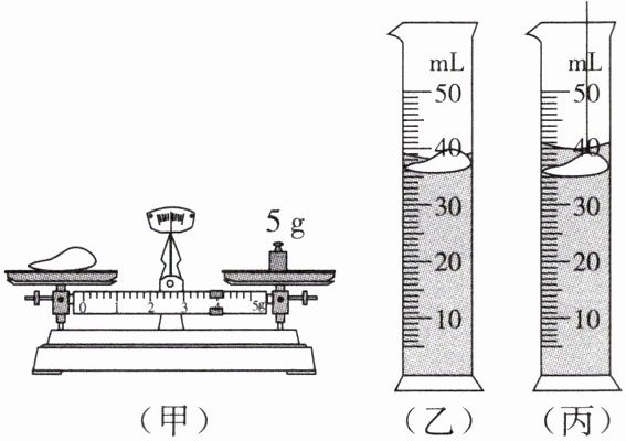 (4)将该种子缓慢放入量筒中,发现种子漂浮在液面上,如图(乙)所示,用细长针将种子缓慢压入盐水中直至浸没,量筒中液面的高度如图(丙)所示,则种子的密度为