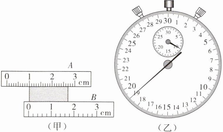 10. 如图(甲),用 A、B 两刻度尺测量同一木块的长度,就使用方法而言,