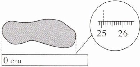 8. 通常情况下,人站立时身高大约是脚长的 7 倍,警察往往用这个方法估测罪犯身高。如图是作案嫌疑人在现场留下的脚印,警察使用的刻度尺的分度值是
