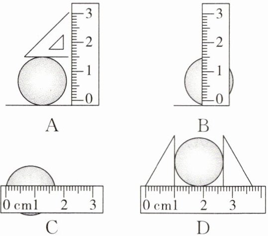 4. (2025·阜阳)如图所示,用刻度尺和三角板测量一个圆形物体的直径,下列做法中正确的是(
