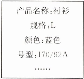 5. (2024·合肥)下图是某校服衬衫吊牌的部分信息,号型“170/92A”表示适穿人群的特征参数及体型。“A”表示适用于一般体型,“170”表示身高 170 cm,“92”表示(