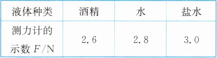 | 液体种类 | 酒精 | 水 | 盐水 |
