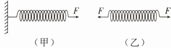 9. (2024·合肥)如图(甲)所示,弹簧的一端挂在墙上,一人用4 N的力F拉另一端,弹簧伸长了5 cm;如图(乙)所示,两个人分别拉该弹簧的两端,弹簧也伸长了5 cm,则左、右两个人的力F分别为(