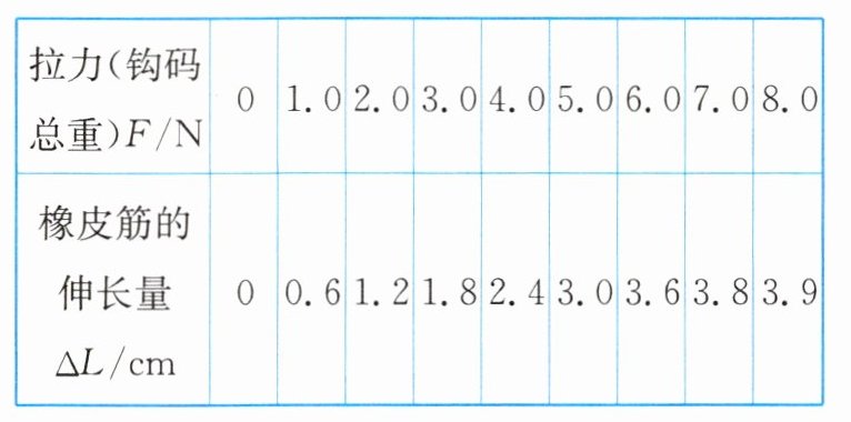11. 在“制作橡皮筋测力计”的活动中,小华先探究橡皮筋的伸长量与所受拉力的关系。实验器材有一根橡皮筋、若干个相同的钩码(每个钩码重0.5 N)、铁架台和细线。