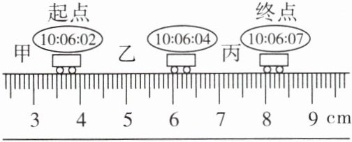 6. 如图所示,小车水平向右做直线运动。数字钟显示的时间格式是“时、分、秒”,则小车从起点到终点通过的总路程是