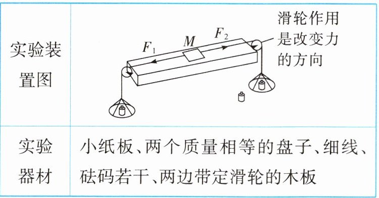 的两个力是否平衡。(3)为了探究二力平衡的两个力是否作用在同一个物体上,操作方法是