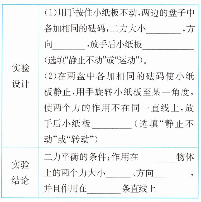 2. 二力平衡:物体如果在两个力的作用下处于平衡状态,这两个力就互称为平衡力,这时的状态称为二力平衡。