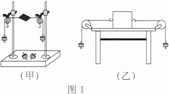 (5)图 1(乙)所示实验中,要求桌面水平且表面是______(选填“光滑”或“粗糙”)的,可以减小木块和桌面之间的______。
