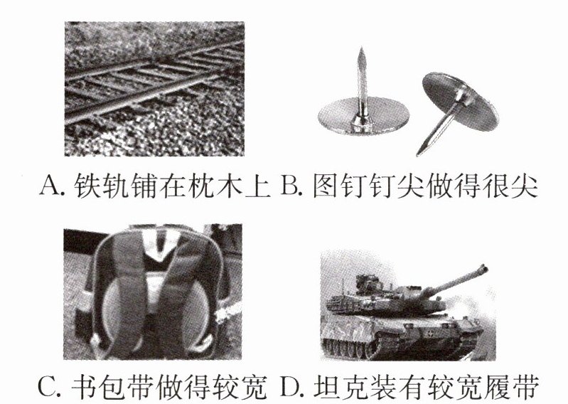 2. 将质量为 100 g、底面积为 $ 4 × 10^{-2} \, m^2 $ 的书平放在水平课桌中央,课桌面积为 0.2 m^2,则书对课桌的压强为(g 取 10 N/kg)(