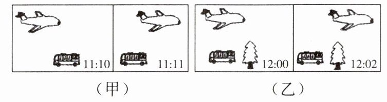 11. 如图所示的是在不同时刻拍摄的(甲)、(乙)两组照片,其中能正确判断是飞机在做机械运动还是汽车在做机械运动的是