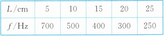 表:不同长度 L 时敲击的振动频率 f
