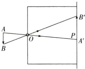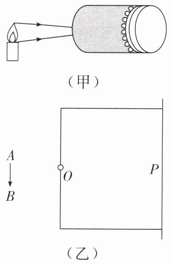 (4)如图(乙)所示,AB是烛焰的示意图,作出它通过易拉罐底部上的小孔O在光屏P上所成的像。