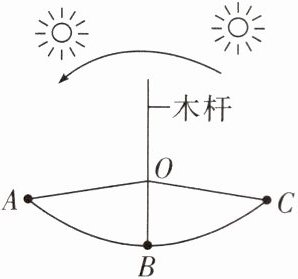 11. (2025·六安)(物理学与工程实践)《考工记》著于春秋战国时期,是我国流传至今年代最早的关于手工业技术的文献。其中记载了一种通过太阳的影子辨别东西方位的方法,如图所示,在水平地面上的O点竖立一根木杆,从早晨到傍晚,木杆的影子从图中的OA处运动到OC处,则B点在O点的(