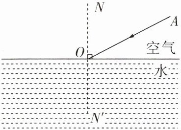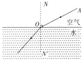 [典例 3]如图所示,一束光线 $ AO $ 从空气斜射入水中,请画出大致的折射光线。