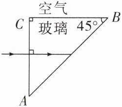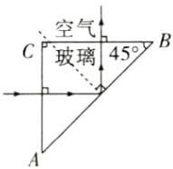 [变式 3] 如图所示,一条光线垂直界面 $ AC $ 进入玻璃砖后,在界面 $ AB $ 上只发生反射,在图中画出该光线经界面 $ AB $ 反射和从界面 $ BC $ 离开玻璃砖后的光线。