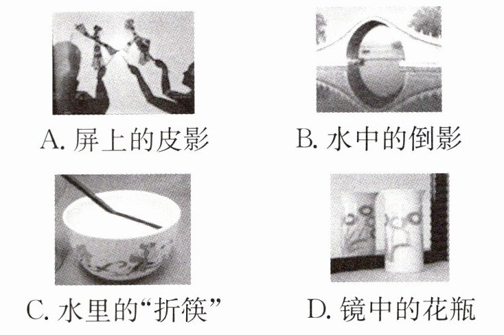 [典例 2] 如图所示的光现象中,由于光的折射形成的是 (