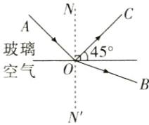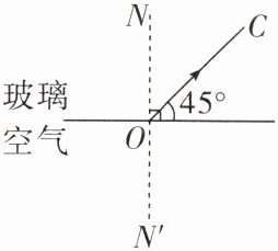 11. 光从玻璃斜射入空气中,在玻璃与空气的分界面上发生折射和反射,反射光线OC如图所示,请在图中画出入射光线AO和折射光线OB的大致方向。