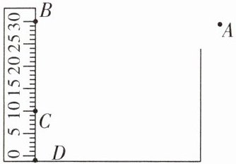 12. 为测量容器中水的深度,一同学将刻度尺竖直插入水中,如图所示。从A处向水中看去,看到刻度尺上B点在水中所成的像位于C点,同时看到水中D点的像也位于C点。请据此:
