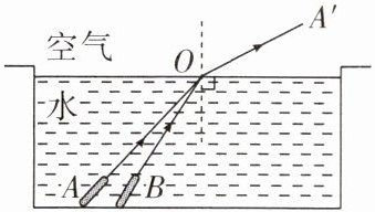 9. (2024·河南中考)如图所示,观光水池中,一束红光沿AO方向从水中射入空气,折射光线为OA'。若另一束红光沿BO方向从水中射入空气,请大致画出入射光线BO的折射光线,并标出对应的折射角r。