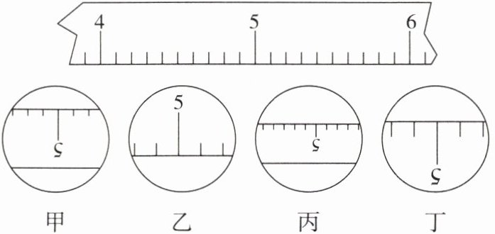 6. 如图是放置在水平桌面上的刻度尺的一部分,甲、乙、丙、丁是通过凸透镜所看到的刻度尺的像。若凸透镜先贴着刻度尺然后逐渐远离,则看到刻度尺的像的先后顺序正确的是(