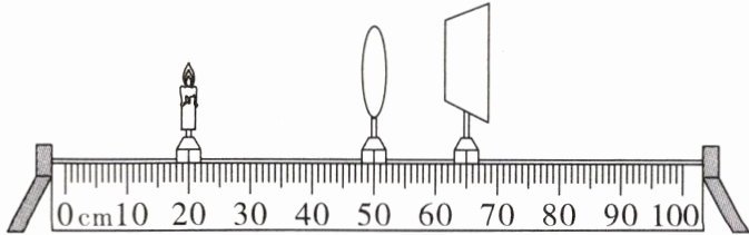 (2) 若保持凸透镜在50 cm刻度线处,把蜡烛放在光具座40 cm刻度线处,在透镜另一侧将光屏沿主光轴远离透镜的过程中,光屏上的光斑大小将