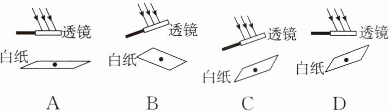 1. 小明利用太阳光测量凸透镜的焦距。下列操作最合理的是(