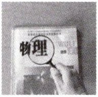 7. 小聪用凸透镜观察到如图所示的现象,此时课本到凸透镜的距离在此凸透镜的