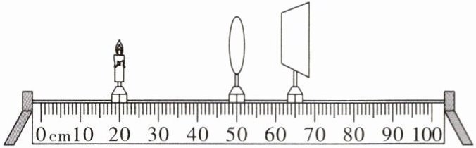 (1) 如图所示,将该凸透镜固定在光具座上,把蜡烛放在光具座上20 cm刻度线处,恰好在65 cm刻度线处的光屏上得到一个倒立、缩小的实像(图中未画出),若保持蜡烛和光屏位置不变,移动透镜到