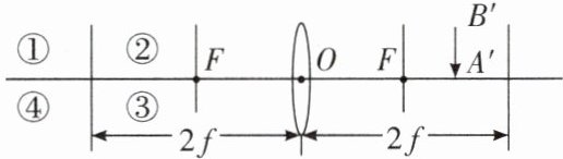10. 如图所示,$F$为凸透镜的焦点,$A'B'为某次实验时物体AB$通过凸透镜在光屏上成的像,则物体$AB$在图中