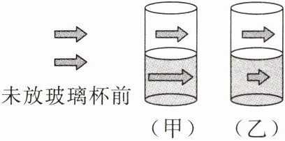 6. 把带双箭头的图片放在装有水的圆柱形玻璃杯后不同位置,看到的情景如图(甲)和(乙)所示。箭头离玻璃杯较远的是