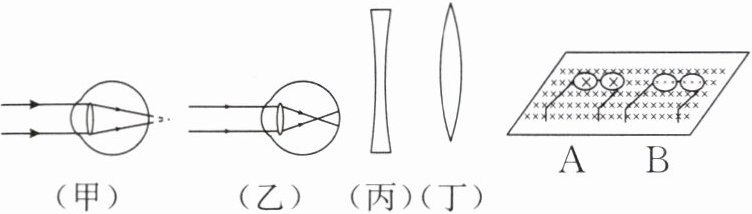 图是爷爷眼睛的成像示意图,矫正需佩戴眼镜的镜片应选用(丁)