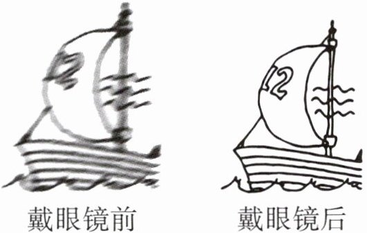 2. (2024·合肥)如图所示,这是小王同学戴上眼镜前、后观察到的远处帆船的情形,下列相关说法正确的是(