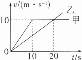 D.在 $ 0 \sim 20 \, s $ 内,甲的平均速度等于 $ 10 \, m/s $