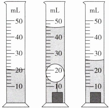 ,最后测得塑料球质量为$11.2g$。(2)为了测塑料球的体积,利用沉坠法进行如图所示的测量。结合量筒示数,算得塑料球的密度为