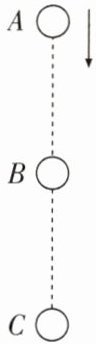 1. 在自由下落过程中,物体运动速度会越来越快,一个物体由$A$点自由下落,相继经过$B$、$C$两点,已知$AB = BC$,如图所示。物体在$AB段重力做功W_{1}$,做功功率$P_{1}$;在$AC段重力做功W_{2}$,做功功率$P_{2}$,则下列关系正确的是(