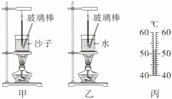 (2)用两盏相同的酒精灯同时加热沙子和水,加热过程中用玻璃棒不停搅拌,目的是