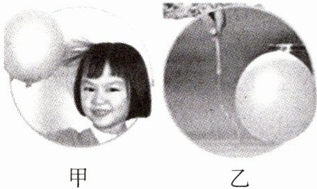 11.(物理学与日常生活)如图甲所示,小女孩将气球在头发上摩擦后,气球会吸引她的头发,头发会飘起来,这是因为气球和头发带上了