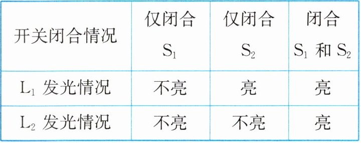 |开关闭合情况|仅闭合$ S_1$|仅闭合$ S_2$|闭合$ S_1$和$ S_2$|