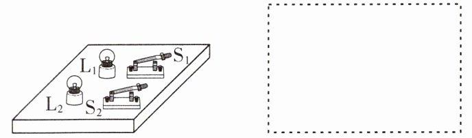 13. 如图所示,电路盒内有电源和导线,面板上有两个灯泡$ L_1、$$L_2,$两个开关$ S_1、$$S_2。$要探究盒内的电路连接,小明同学做了多次实验并将结果填入表中,根据实验结果完成: