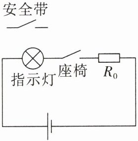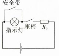 12.(物理学与日常生活)汽车的座椅和安全带插口各相当于一个开关,人坐在座椅上时,座椅开关闭合,指示灯亮;将安全带插入插口时,安全带开关闭合,指示灯熄灭。请你按照要求将如图所示的电路图补充完整。(电阻 R₀用于保护电路)