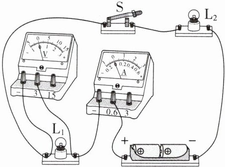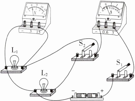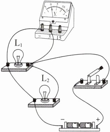 9. 在探究“并联电路的电压特点”实验中,实物连接如图所示,电源电压为 $ 3 \, V $。为使实验更加合理,$ L_1 $、$ L_2 $ 应该选择规格