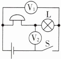 2. 如图所示,当开关 $ S $ 闭合后,电压表 $ V_1 $ 的示数为 $ 12 \, V $,电压表 $ V_2 $ 的示数为 $ 4 \, V $,那么电铃两端的电压为(