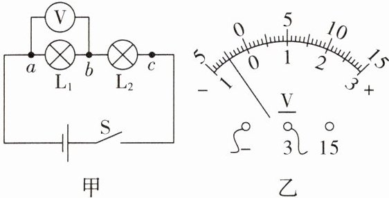 11. (2025·马鞍山)在“探究串联电路的电压关系”时,某同学按如图甲所示连接电路,闭合开关 $ S $ 后,用电压表分别测量 $ U_{ab} $、$ U_{bc} $、$ U_{ac} $ 三个电压值。关于在实验过程中出现的情况,下列说法正确的是(